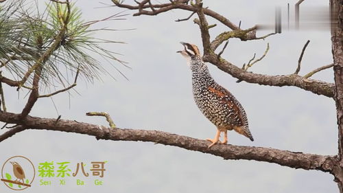 松树上有一只野生鹧鸪,啼叫声清晰响亮,平时只闻其声不见其影
